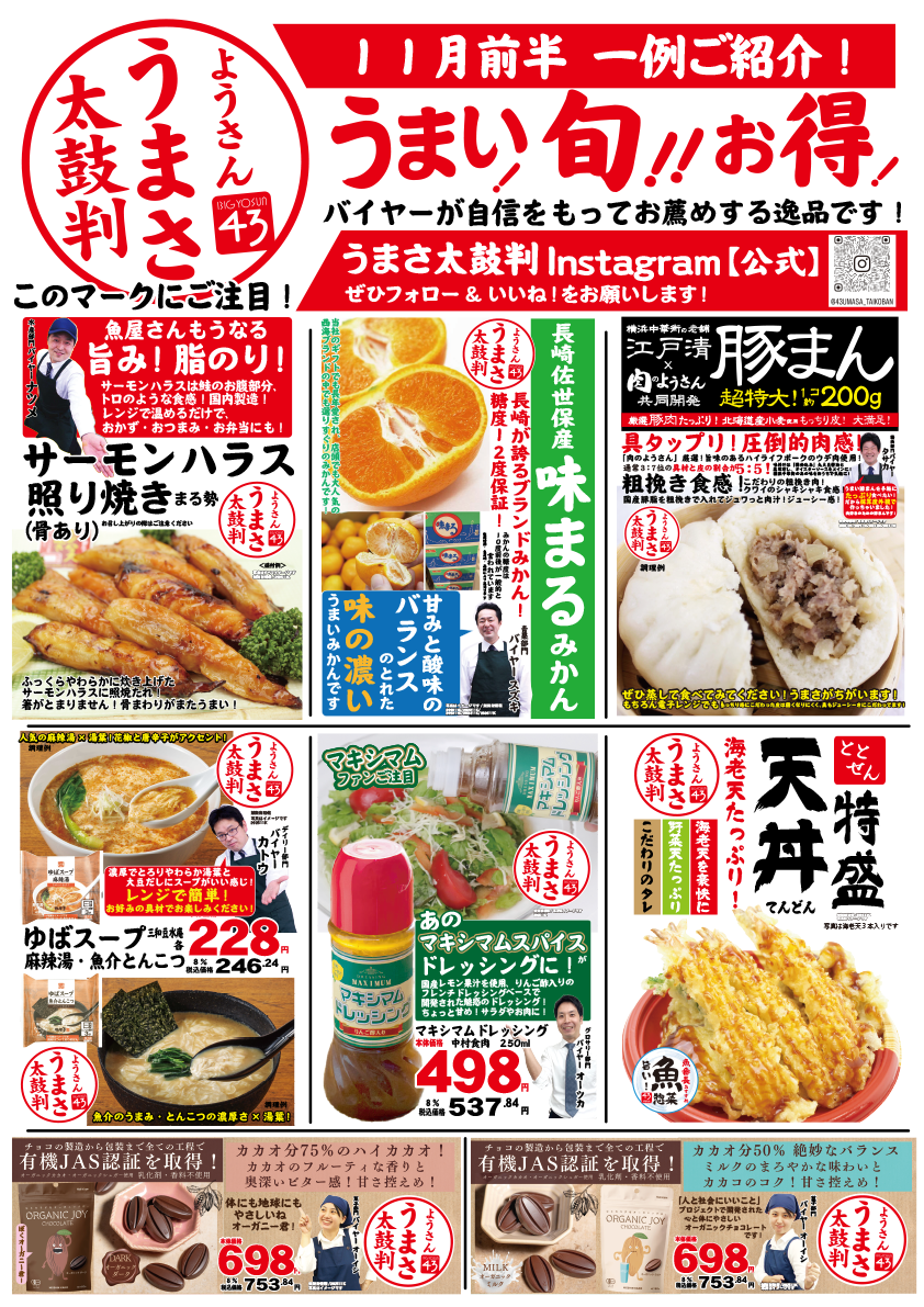 ビッグヨーサンのバイヤーが自信をもっておすすめします!うまい!旬!お得!店内にはたくさんおすすめ品をご用意しておりますが一例をご紹介!