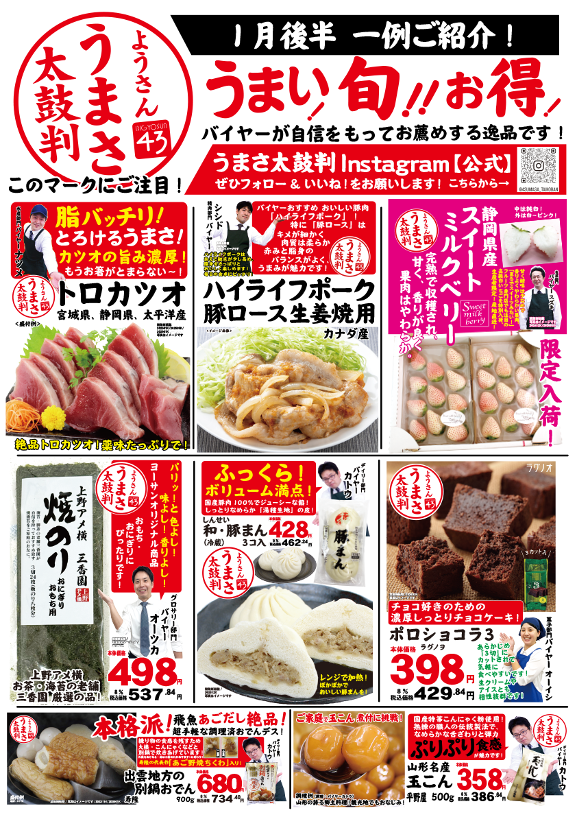 ビッグヨーサンのバイヤーが自信をもっておすすめします!うまい!旬!お得!店内にはたくさんおすすめ品をご用意しております!