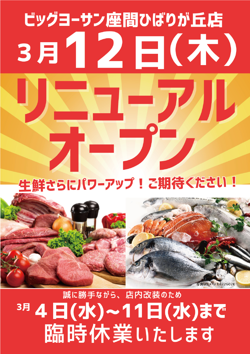 【座間ひばりが丘店】3月12日リニューアルオープン! – 新鮮激安スーパー ビッグヨーサン